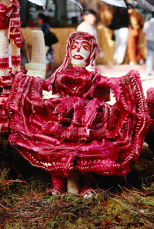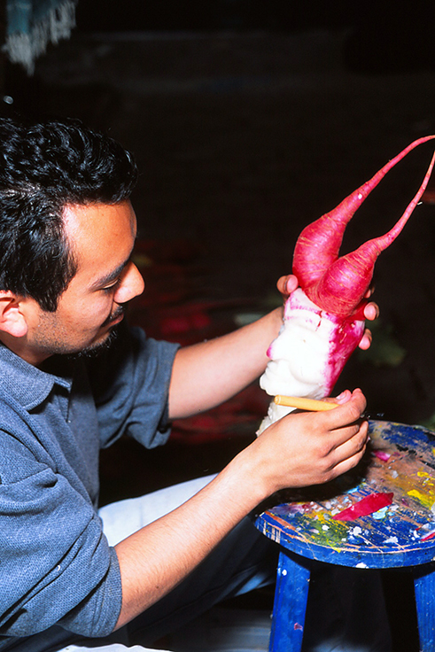 Los artistas, muchos de ellos campesinos y familias enteras pasan horas tallando y ensamblando las piezas, conscientes de que su obra tiene una vida muy limitada (apenas unas horas), antes de que el rábano comience a marchitarse. Saben que al cortarlo y penetrar el metal del cuchillo, se acelera su decadencia. El trabajo artesanal solo queda plasmado en fotografías y en el recuerdo de quienes recorren los diferentes puestos durante las hras de exposición admirando la maestría e inventiva de los participantes.